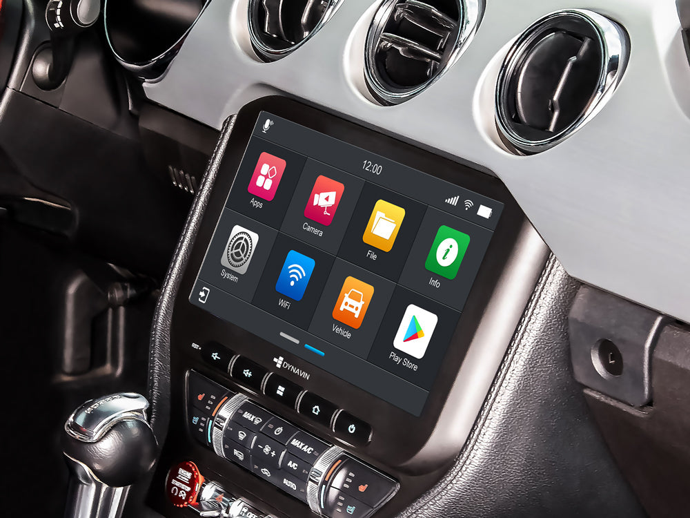 The Dynavin Mustang radio retains the original HVAC buttons.